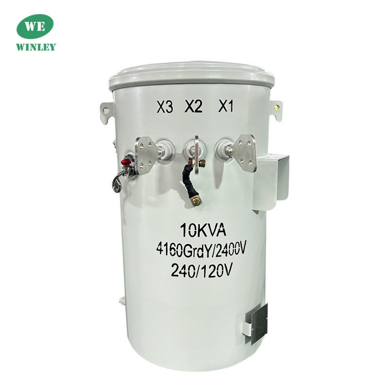 محول 10 كيلو فاو واحد المرحلة مثبت على قطب تم تصميمه بدقة وتصنيعه بفخر من قبل WINLEY Electric. يلبي هذا المحول المعايير الصارمة لمعيار ANSI / IEEE C57.12.20لضمان أداء و سلامة استثنائية.